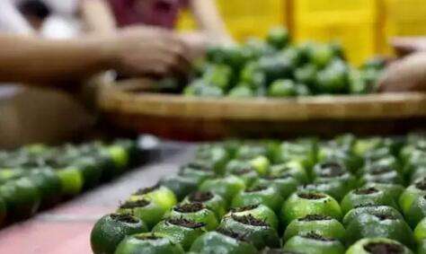 柑橘采收期可分為青皮、黃皮和紅皮期,其中,黃皮和紅皮的果實是成熟的,而小青柑是用尚未成熟的果皮加工而成,雖然這時的柑橘仍很青澀,但其揮發(fā)油含量高,橙皮苷含量高,清熱殺菌的作用明顯,經(jīng)加工后配以合適的普洱熟茶,成就了小青柑茶,然而高品質(zhì)的小青柑從選果到制作、烘干、儲藏都是極有講究的。