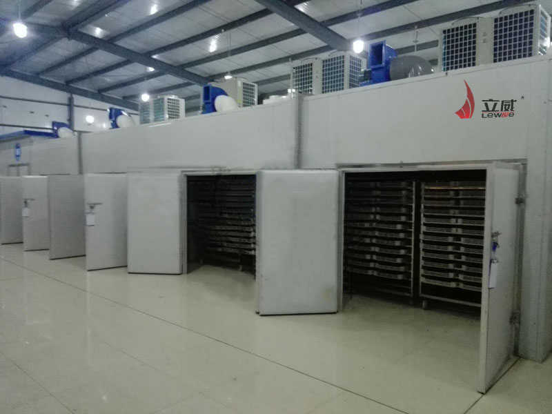 將核桃仁裝進(jìn)專用304不銹鋼網(wǎng)格盤(pán)內(nèi),每盤(pán)裝15近,每車裝12盤(pán),6P烘干除濕一體主機(jī)帶25立方烘干房,可以一次放入8臺(tái)物料車,一次可以進(jìn)料1200斤,烘干時(shí)間在15-20小時(shí)之間,系統(tǒng)每小時(shí)用電7度,將浸香后的核桃仁在60℃~70℃溫度下干燥至水分含量在10%以下。