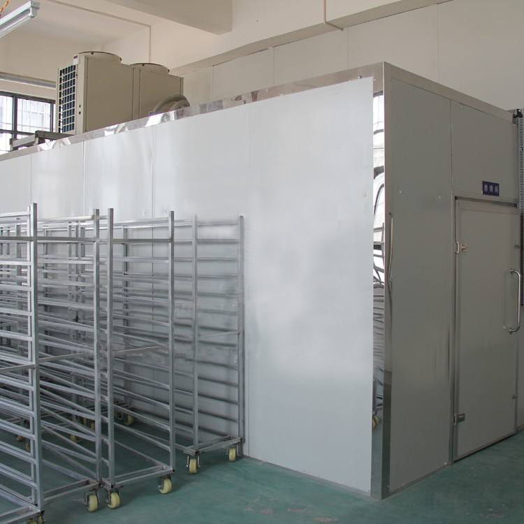 目的是使?jié)づc果肉分離。將煮制好的栗果用清水沖洗掉表面粘附的調(diào)味液,將板栗放入物料托盤,插入物料車,推入熱泵烘干房,板栗的耐受溫度講稿,可以將溫度直接調(diào)至75度進(jìn)行烘干,時(shí)間設(shè)定6小時(shí),進(jìn)行連續(xù)排濕,栗果水分下降至30%時(shí),澀皮與果肉分離,食用時(shí)容易剝落,且果肉不碎,干濕度適中。